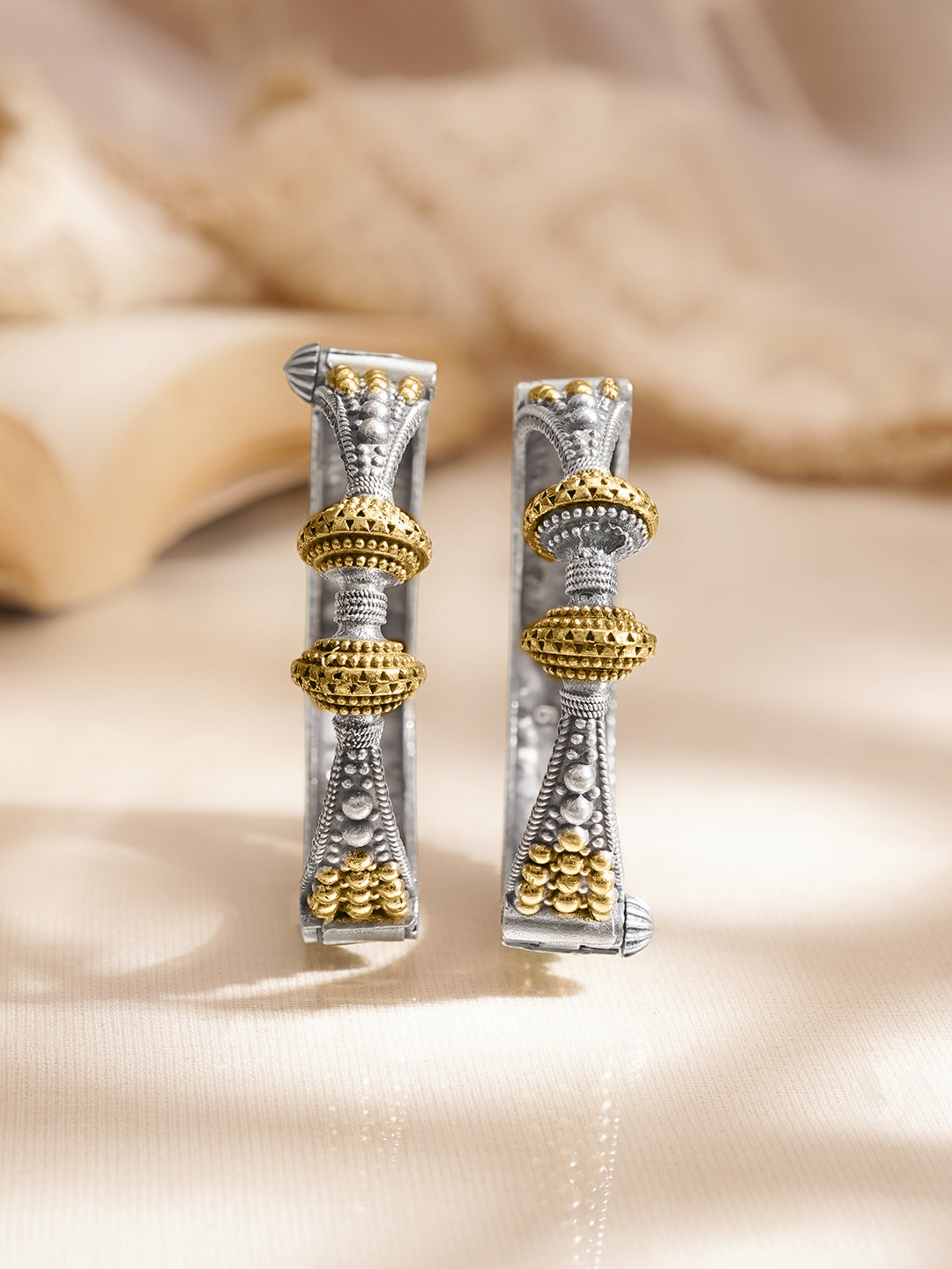 Oxidised Gold Silver Statement Dual Tone Bangles