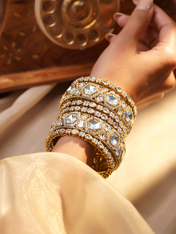 Explore our finest collection of gold plated kada bangles online at Rubans Accessories. Adorn your wrists with the elegance and beauty of these exquisite pieces.
