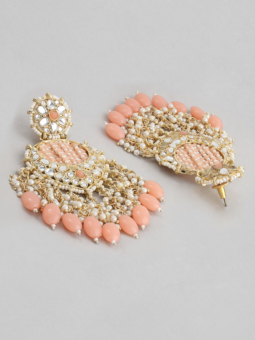 Rubans Gold Plated Chandbali Earrings With Golden And Pink Beads Earrings