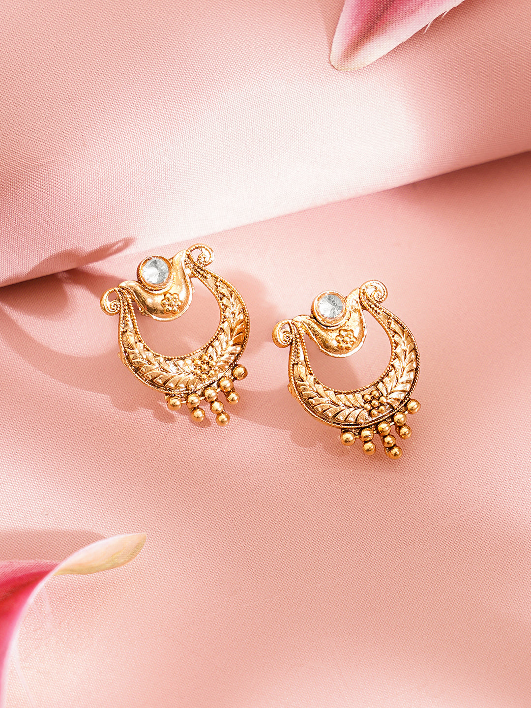 - Crescent motif design with zircon inspired detailing adds a rich traditional statement look