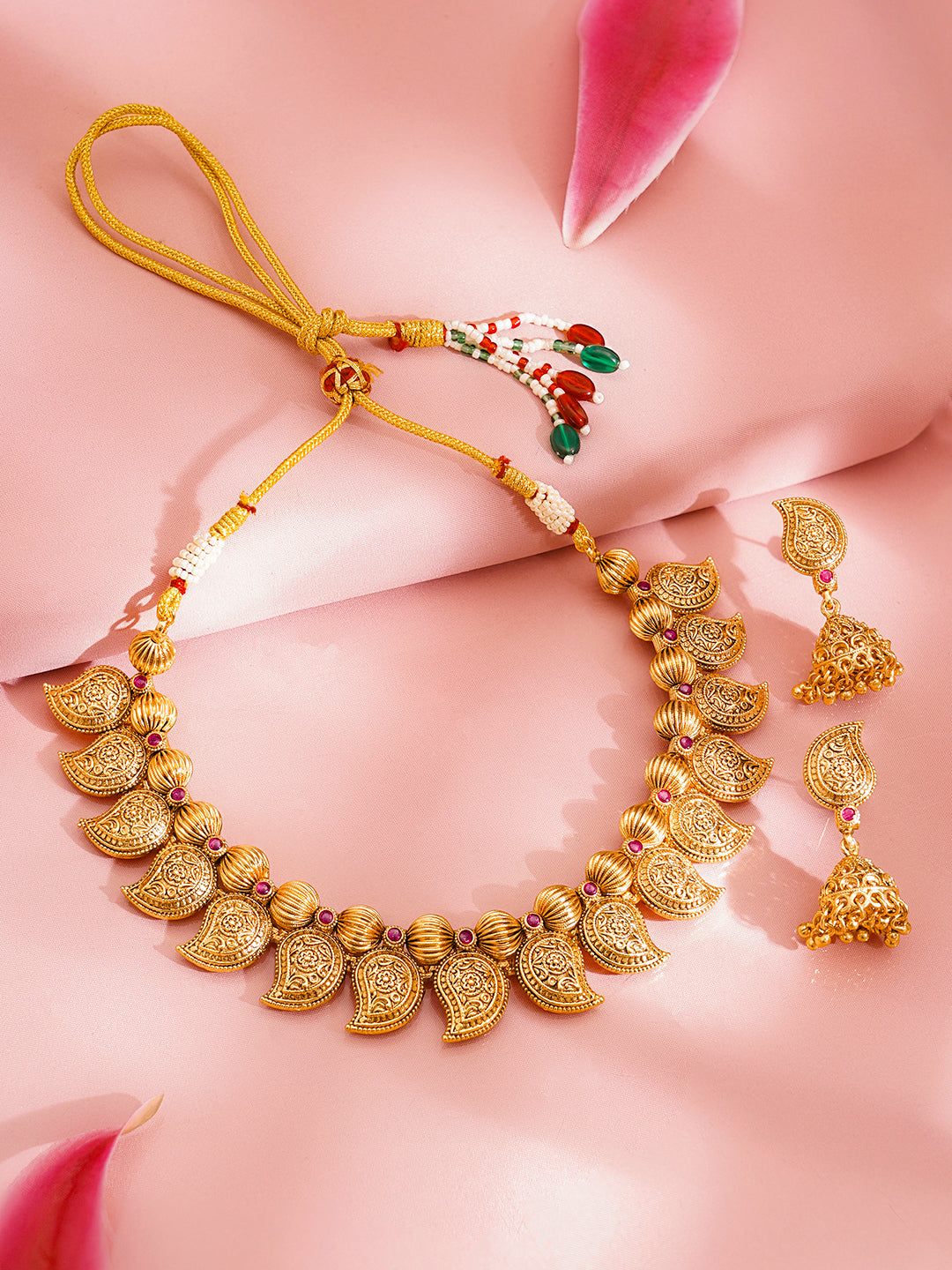 Share on WhatsappGold Plated Brass Gold Paisley Charm Ethnic Necklace Set