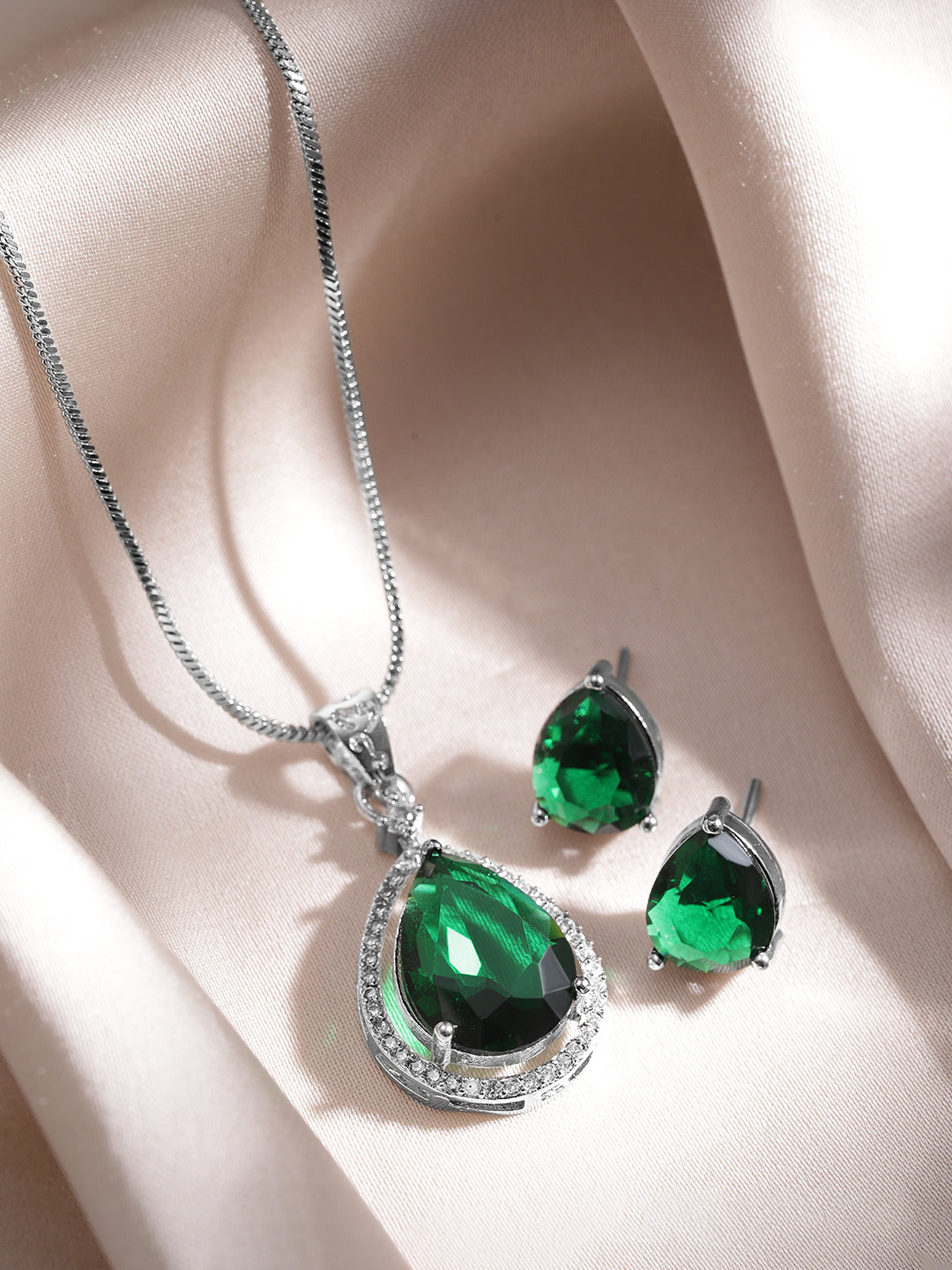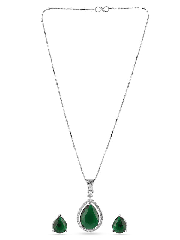 American Diamond Zirconia Green Pendant Necklace Set