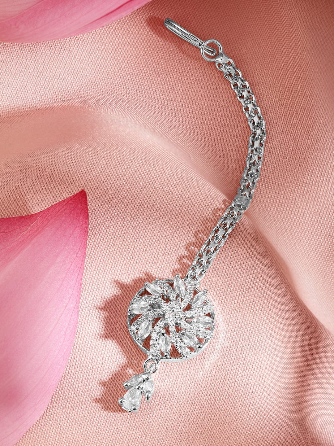 Share on WhatsappRubans Rhodium-Plated Cubic Zirconia Maang Tikka
