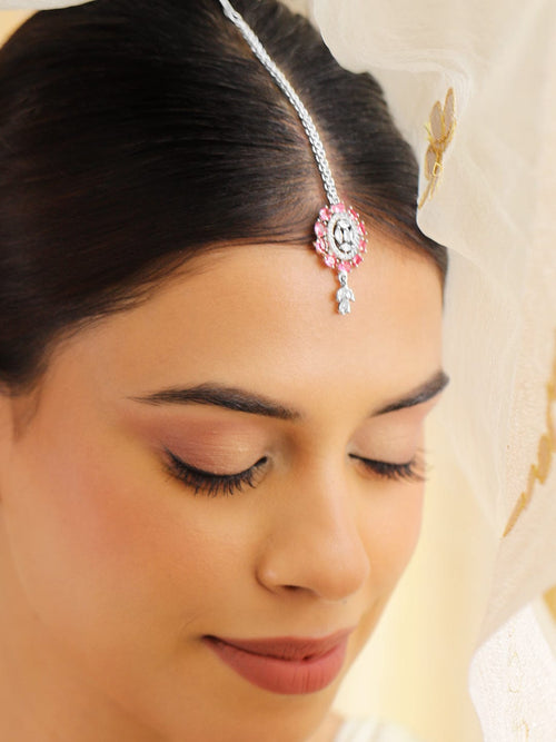 American Diamond Zirconia Pink Accented Maang Tikka