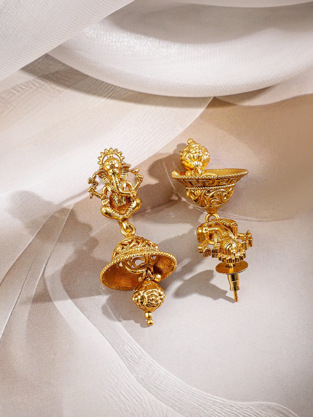 Necklace Set : Rubans 22K Gold-Plated Temple Necklace Set with divine Ganesha motif and matching earrings, handcrafted in brass with antique finish, perfect for weddings, festive occasions, and ethnic celebrations.