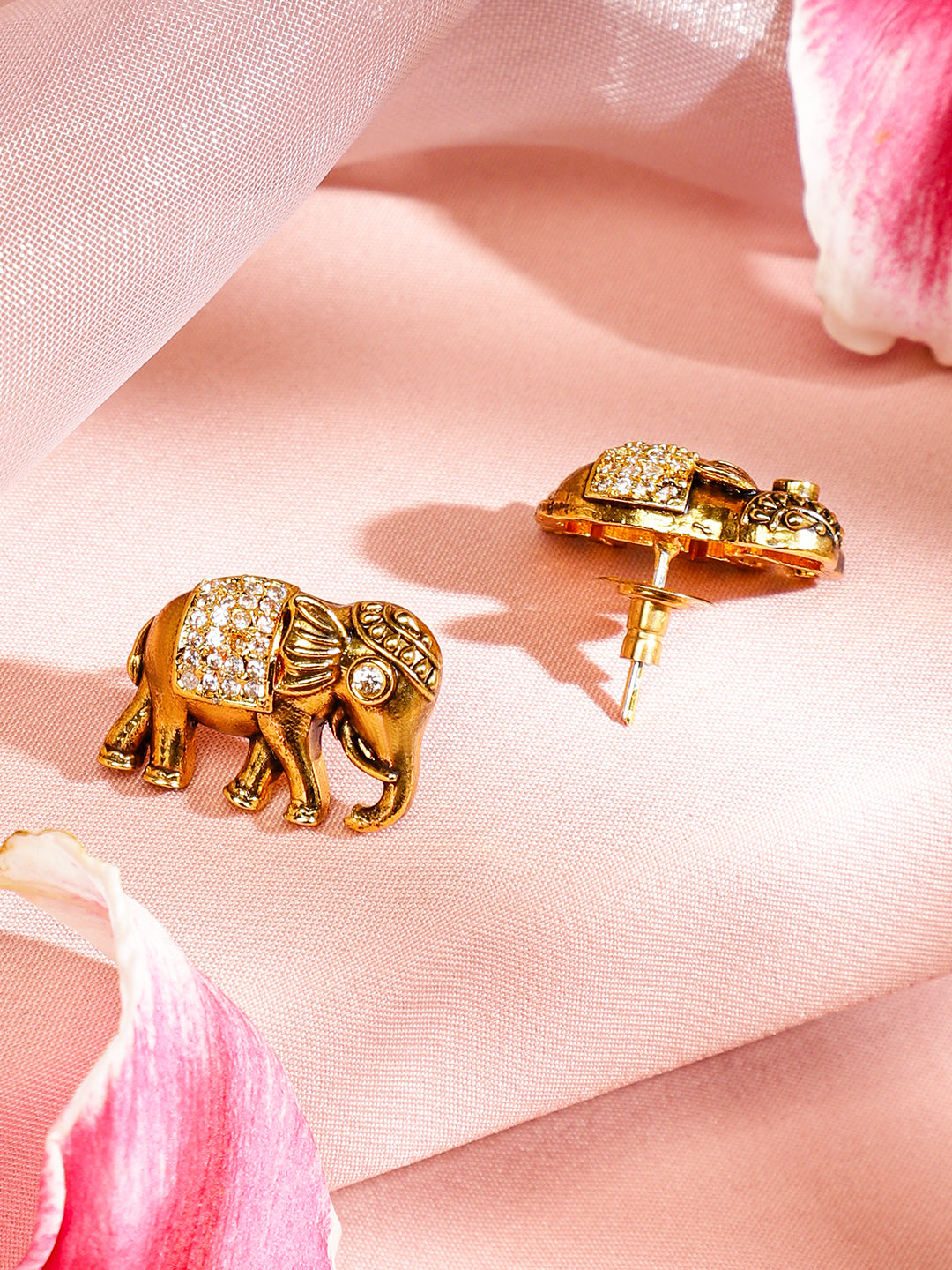 Necklace Set : Rubans 22K gold-plated ethnic jewellery set with circular motifs, white stones, and golden bead hangings — a radiant pick for festive and wedding looks.