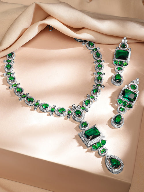 American Diamond Zirconia Studded Emerald Necklace Set