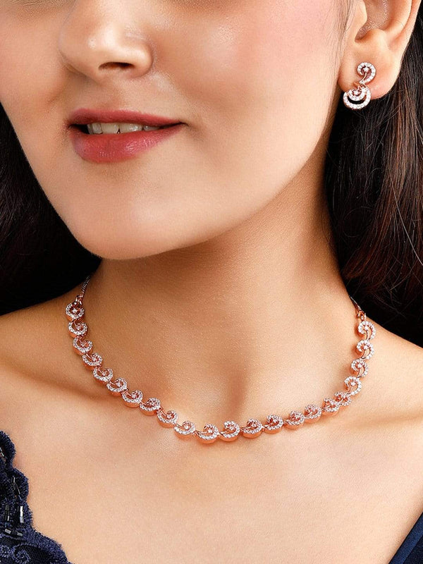 Rubans Rose Gold Plated Zirconia Stone Studded Handcrafted Necklace Set.