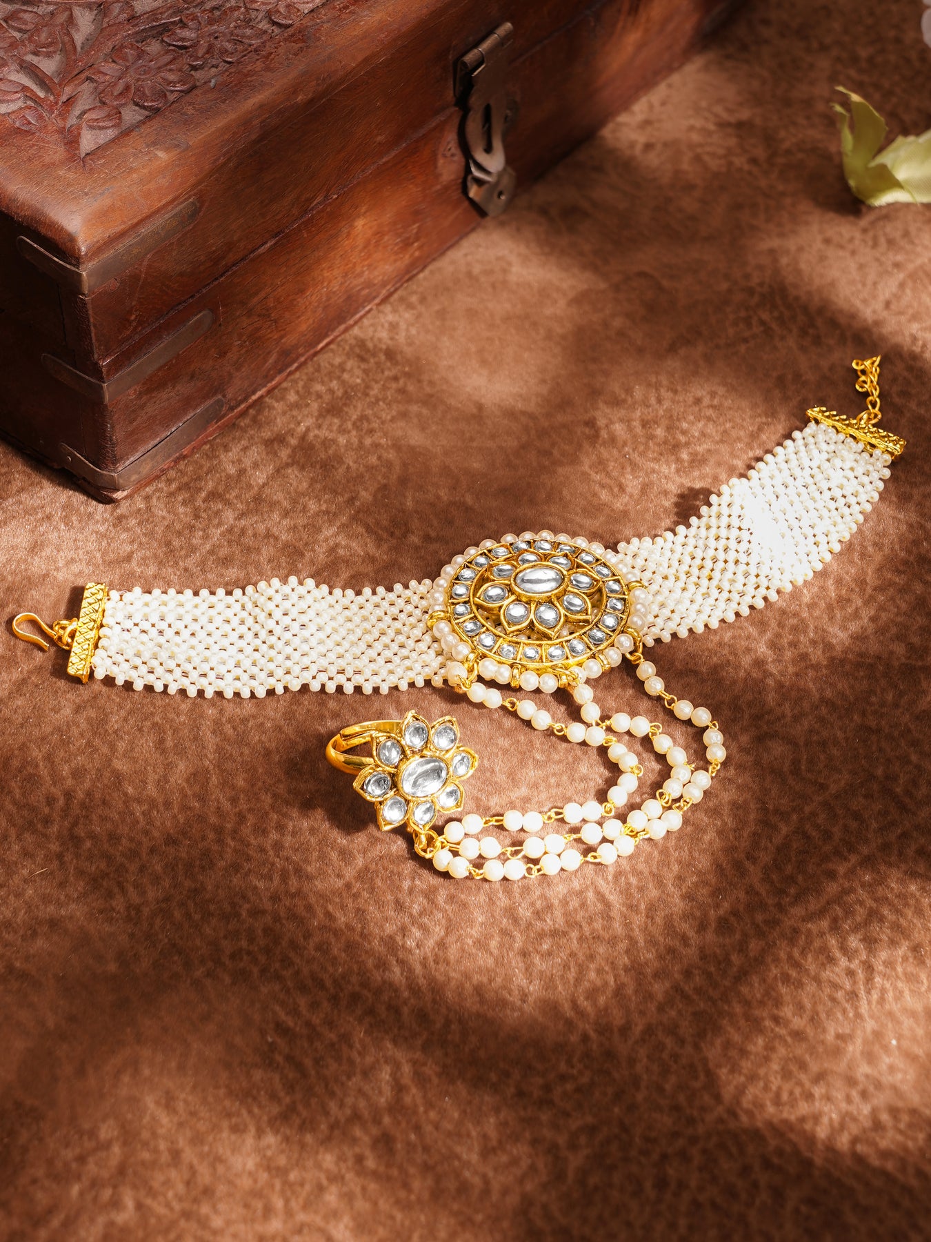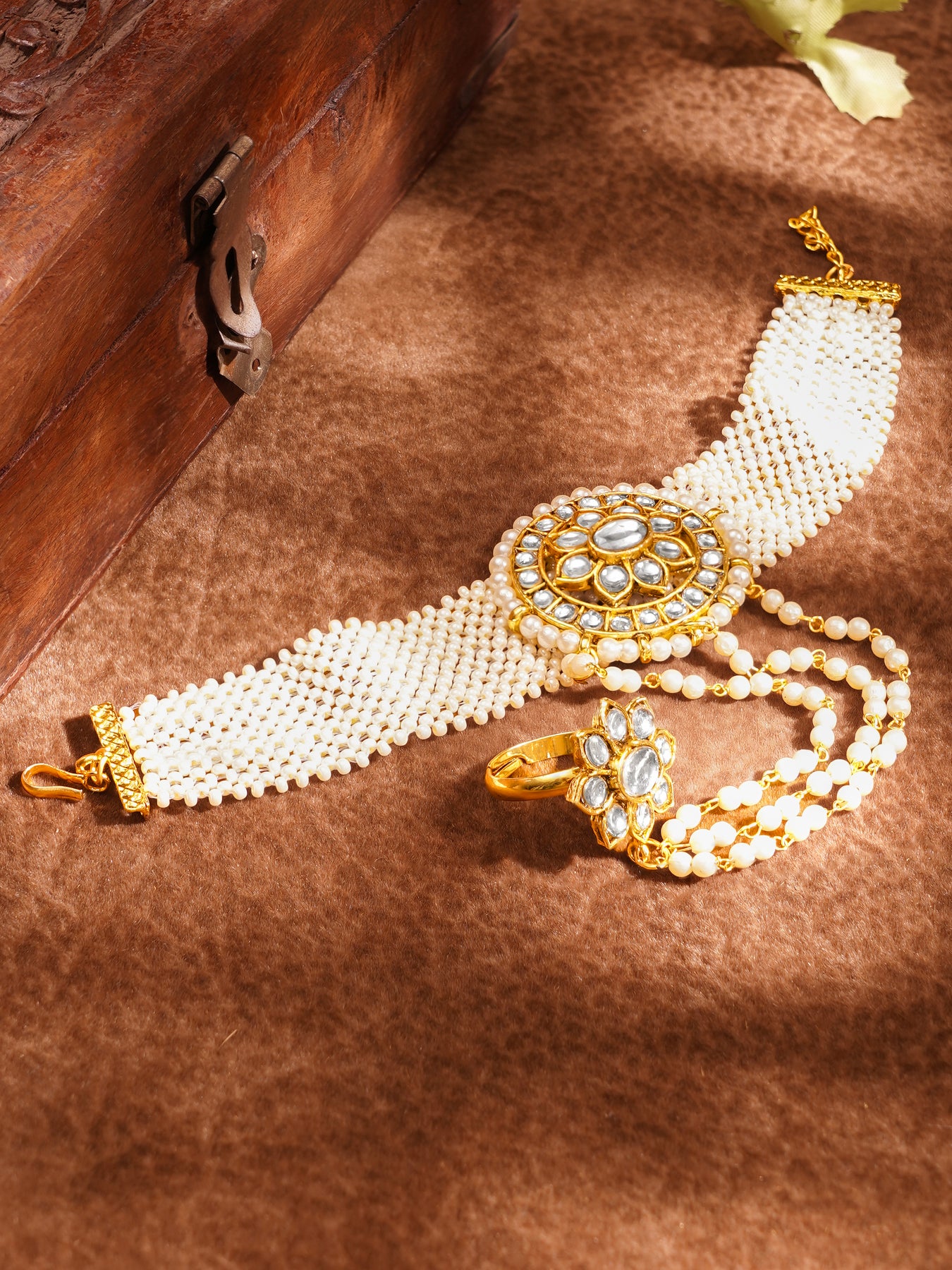 Statement Pearl Kundan Haathphool Bracelet