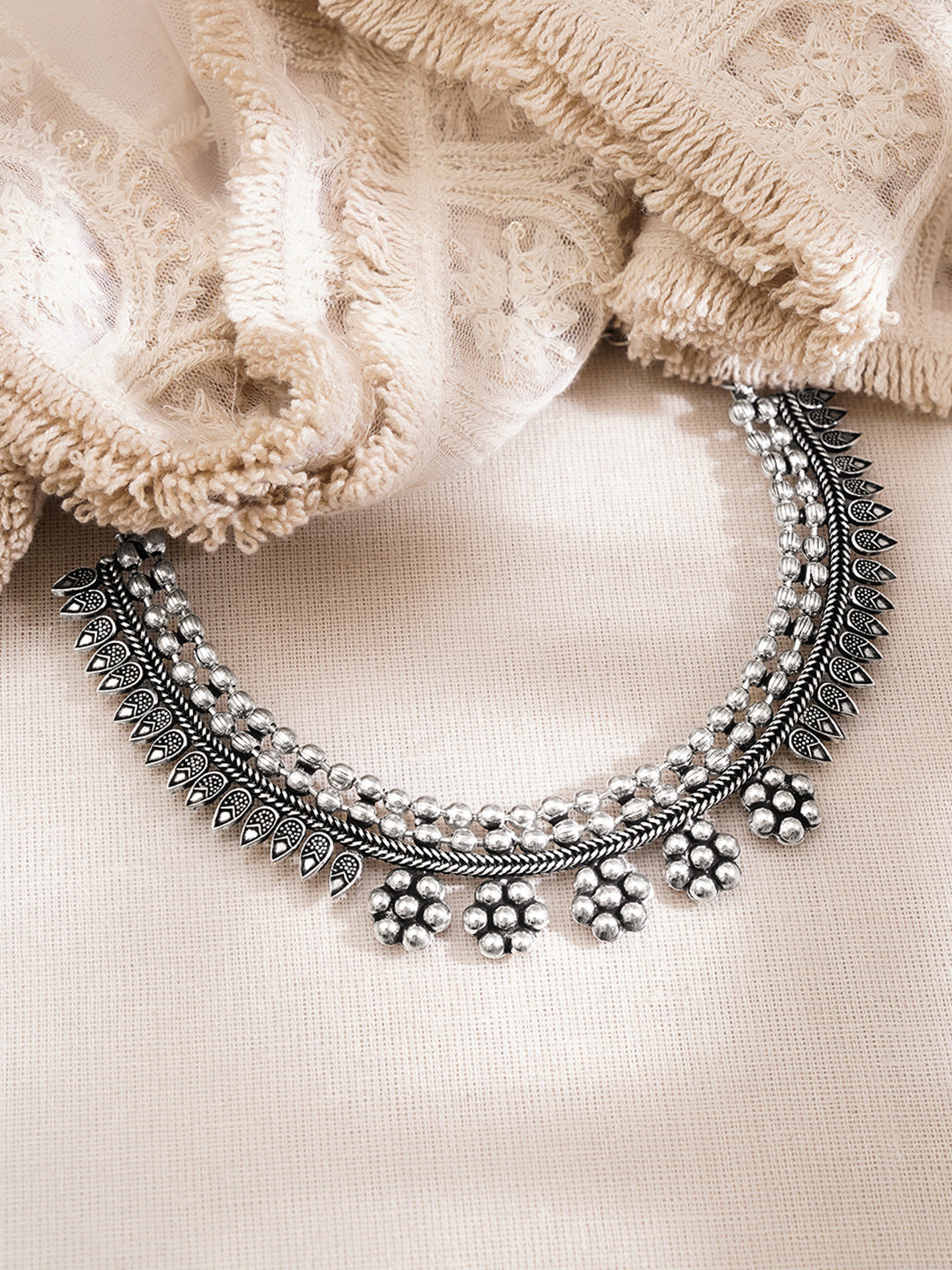 - Oxidised Silver Finish: Crafted in antique silver tone with detailed texturing for a rich traditional appeal.