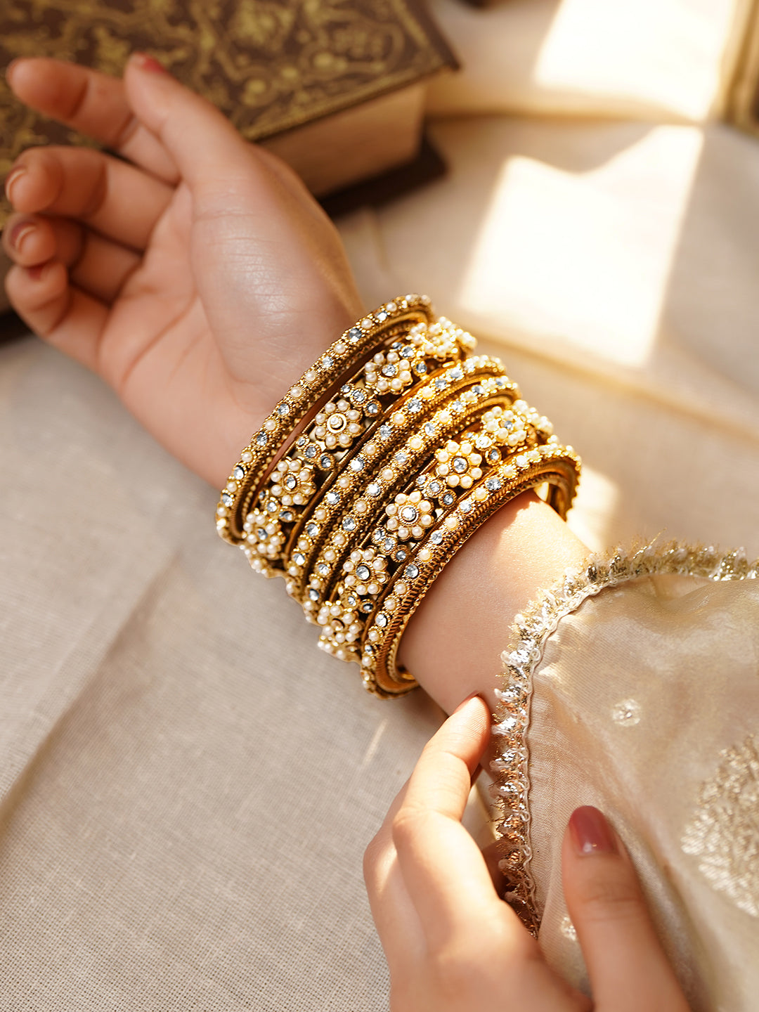 - Set of 6 bangles creates full stacked bridal look