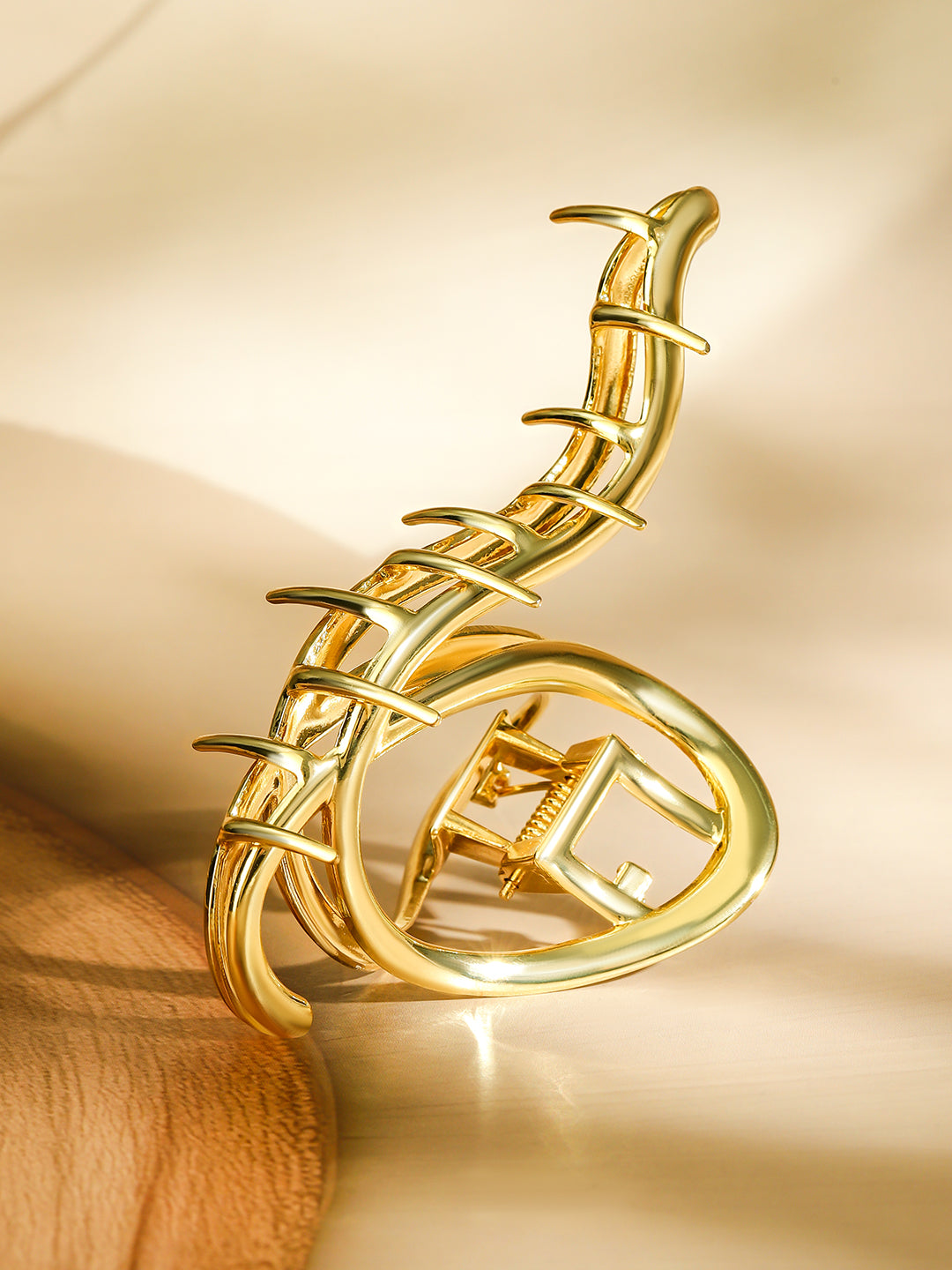 Rubans 18K Gold Plated Abstract Curved Design Hair Claw Clip – Statement Hair Accessory
