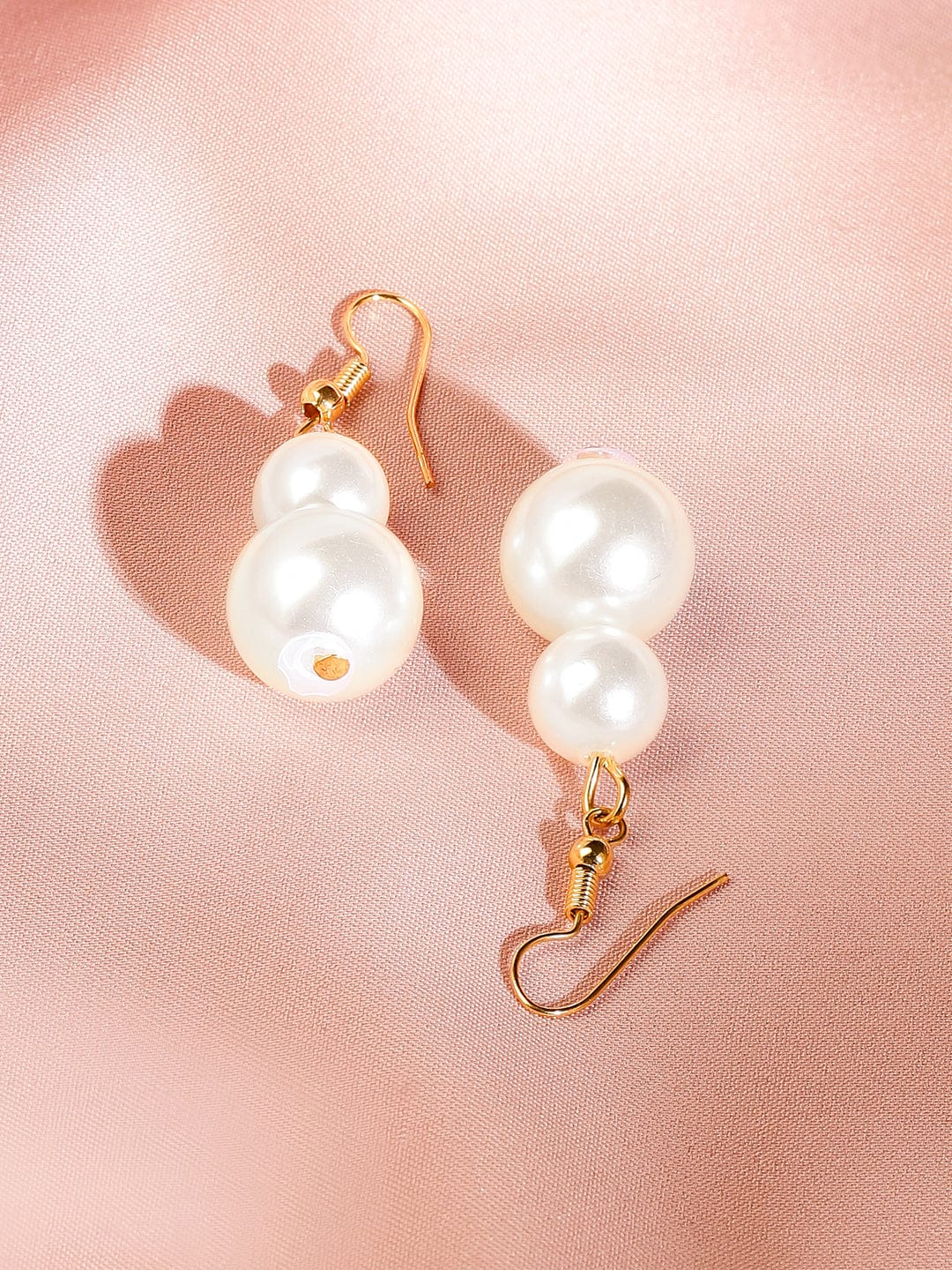 Jewellery Set : A captivating handcrafted multi-layer necklace set featuring glossy white pearls accented with 18K gold-toned plated details. The luxurious layered design exudes elegance, making it a statement accessory for weddings and festive occasions.