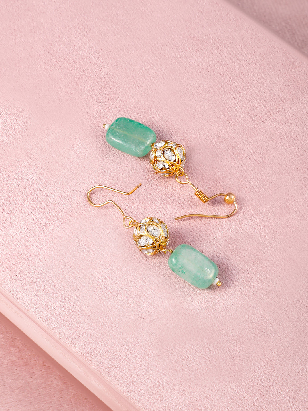 Necklace Set : This stunning necklace set features a 22K gold-plated finish with an elegant antique design. The aqua green beads add a vibrant touch, beautifully complementing the intricate pendant. The set includes a matching pair of earrings, crafted with attention to detail for a cohesive and graceful look. Perfect for traditional and statement styles, this piece enhances any attire with its timeless appeal.