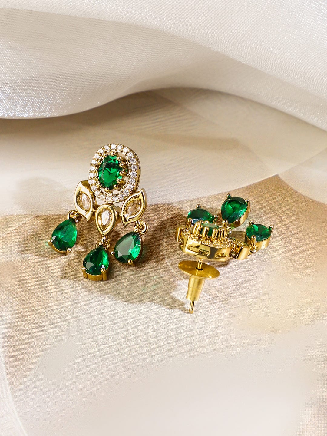 Rubans 22K Gold-Plated Handcrafted Choker Necklace Set with Emerald Green Cubic Zirconia & Off-White Beads Necklaces, Necklace Sets
