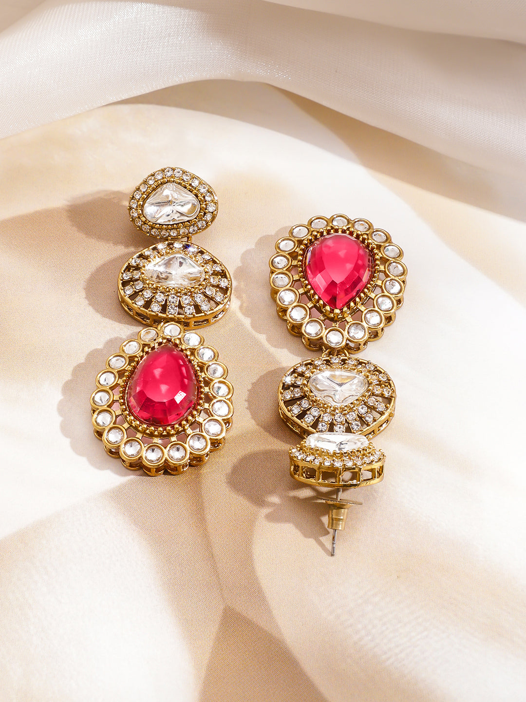 Jewellery Set: Rubans 22K Gold-Plated choker necklace set, studded with ruby red gemstone and sparkling cubic zirconia. Paired with statement earrings, perfect for weddings, festive and party traditional wear.