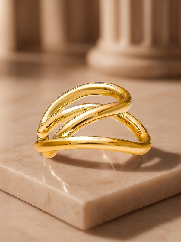 Ear Cuff: Rubans 18K gold-plated stainless steel bold earcuff, designed with a sleek layered statement style. Tarnish-free, waterproof, and durable, perfect for daily, party, or special occasion styling.