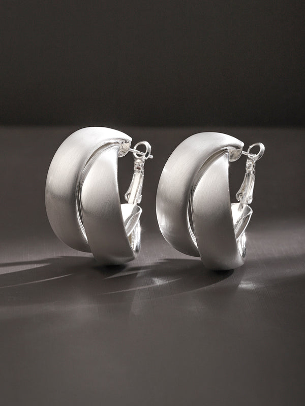 Rubans Voguish Rhodium-Plated Twisted Hoop Earrings with Matte & Polished Finish Earrings