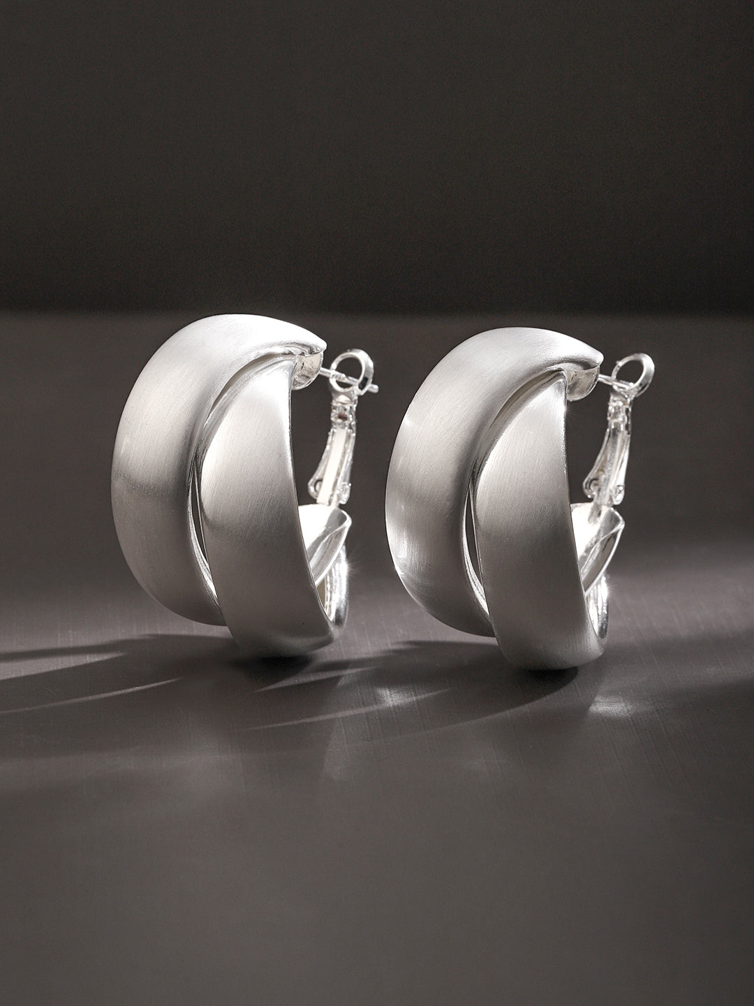 Earrings : These rhodium-plated twisted hoop earrings feature a sleek combination of matte and polished textures, creating a bold yet sophisticated statement piece. A modern take on classic hoops, perfect for refined elegance