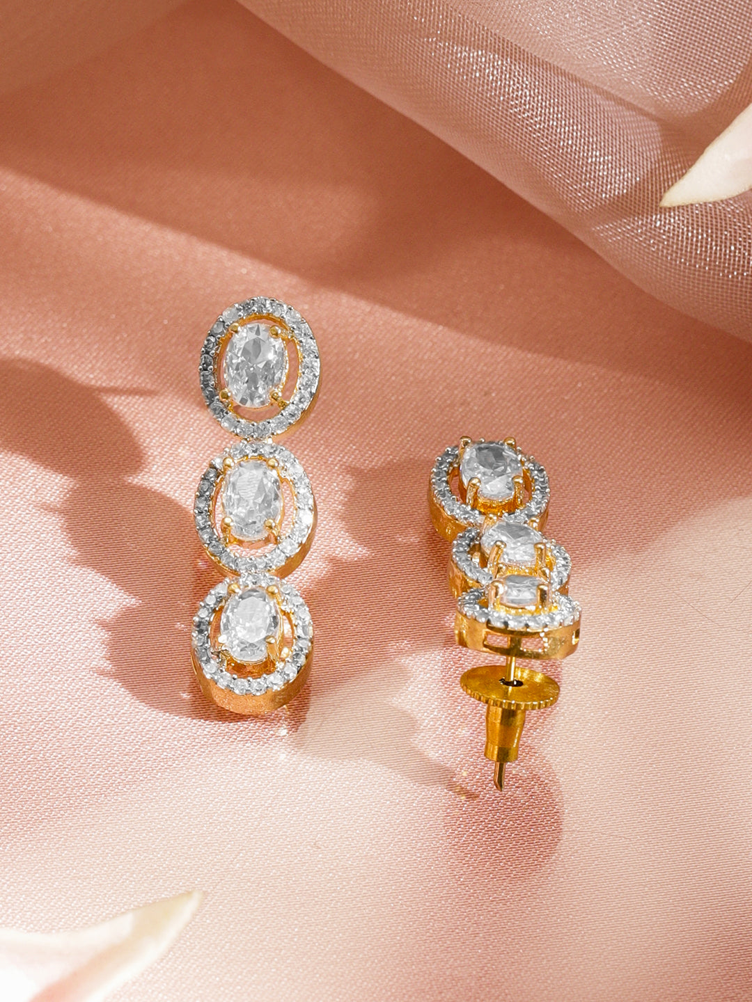 Necklace Set : Rubans 18k gold-plated brass necklace set with dazzling white cubic zirconia stones and matching earrings. A versatile, luxurious pick for weddings, parties, festive moments, and daily elegance.