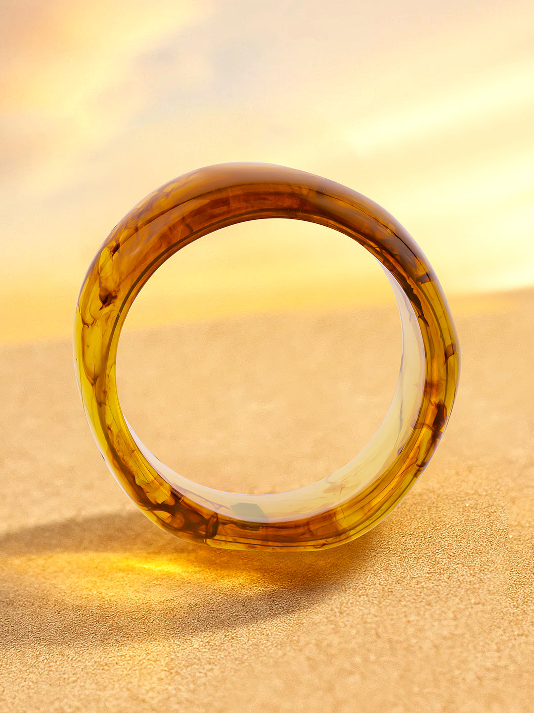 - Chunky Statement Look: Oversized resin bracelet with golden amber marble swirl finish for bold styling.