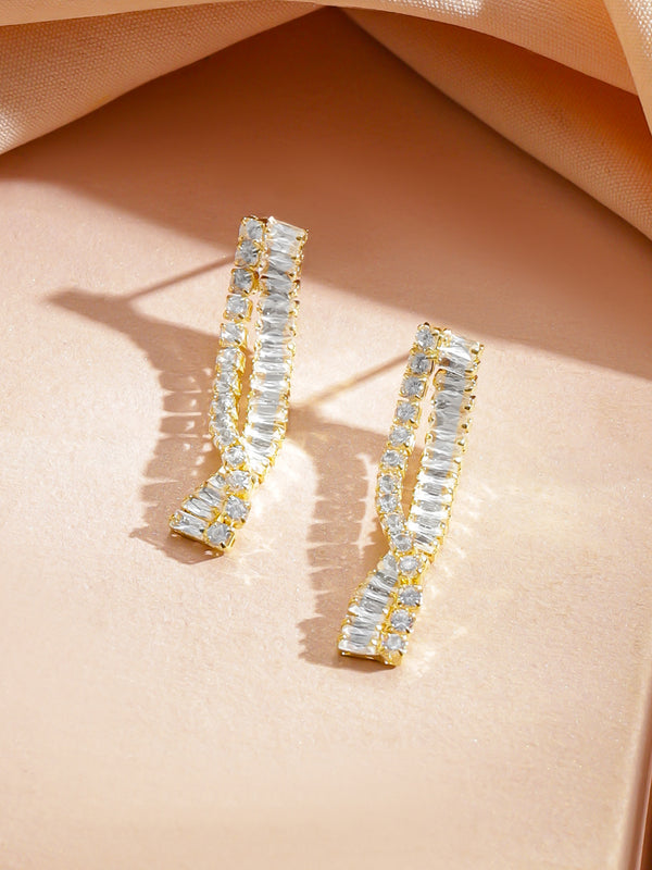 This Rubans Voguish 18K gold-plated brass necklace set with crystal AD stones and a twisted pattern radiates refined elegance, perfect for festive and evening occasions.