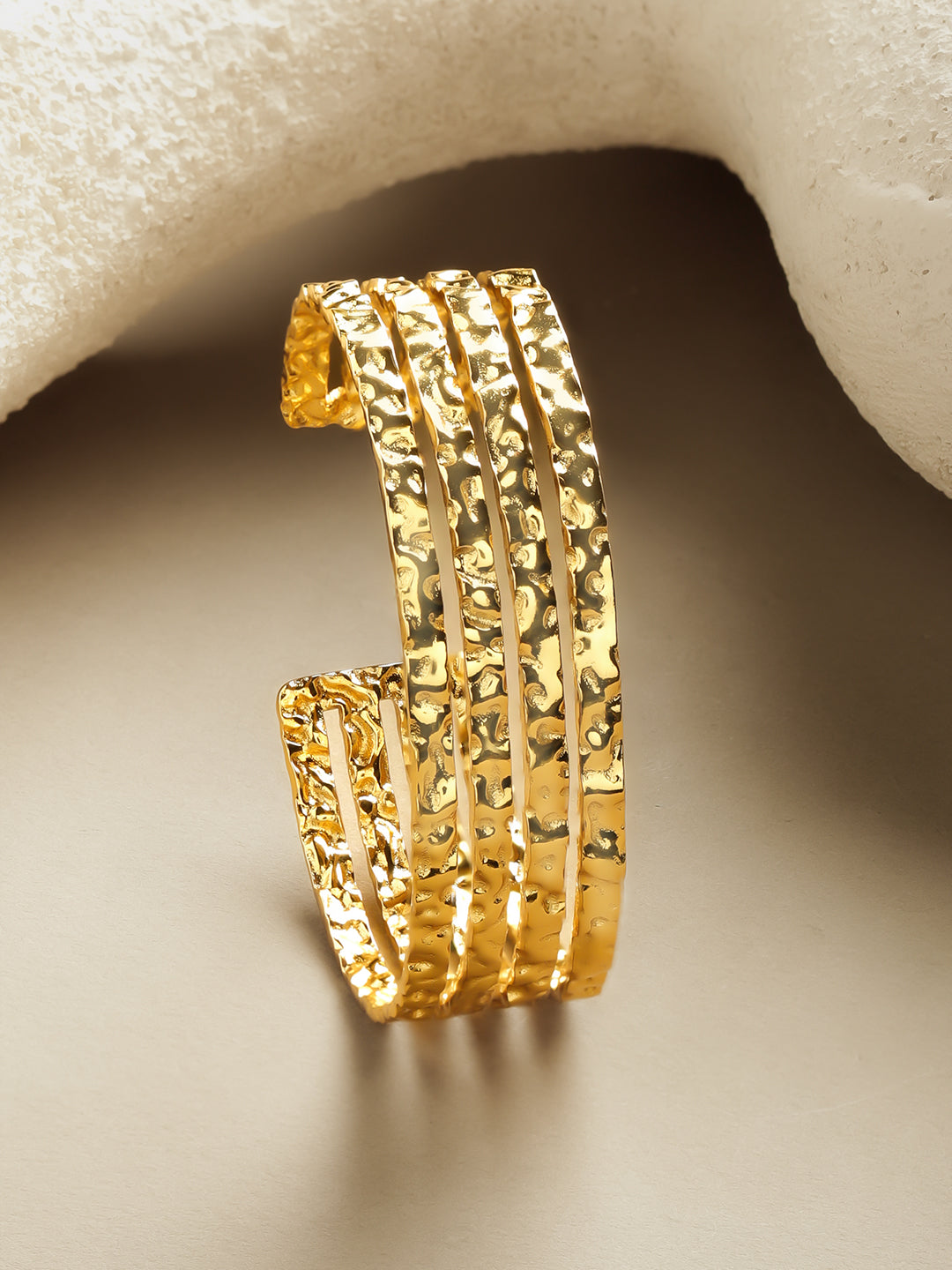 Rubans Voguish 18K Gold-Plated Stainless Steel Tarnish-Free Waterproof Hammered Cuff Bracelet