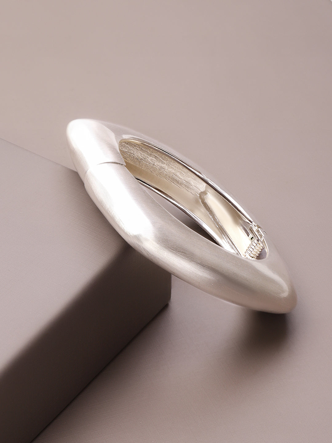 Rubans Voguish Rhodium Plated brass matte finish geometric bangle bracelet, a bold statement design blending modern minimalism with timeless elegance. Perfect for daily wear, festive, party & wedding looks.