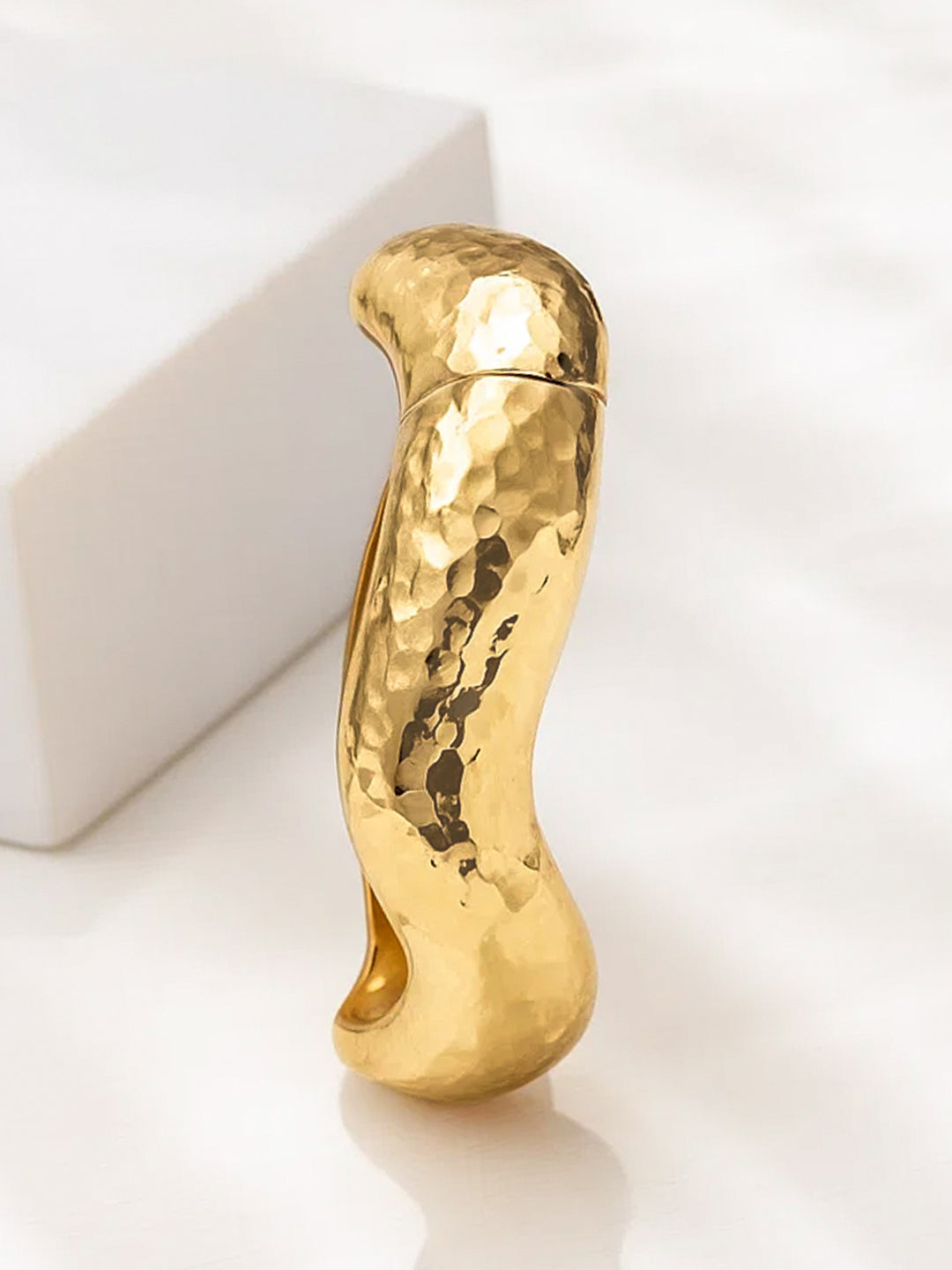 Rubans Voguish 22K gold-plated brass hammered wavy bangle bracelet, featuring a bold textured finish and fluid wave silhouette, perfect for elevating daily, festive, or party looks with modern luxury.