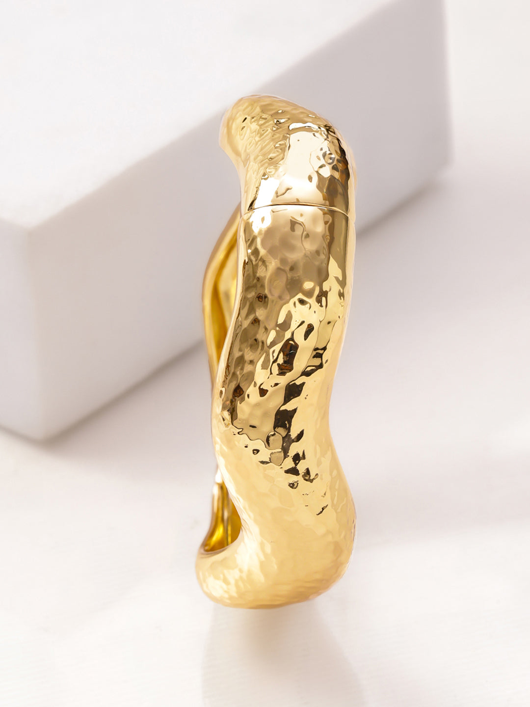 Rubans Voguish 22K Gold-Plated Brass Hammered Textured Wavy Finish Bold Statement Bracelet
