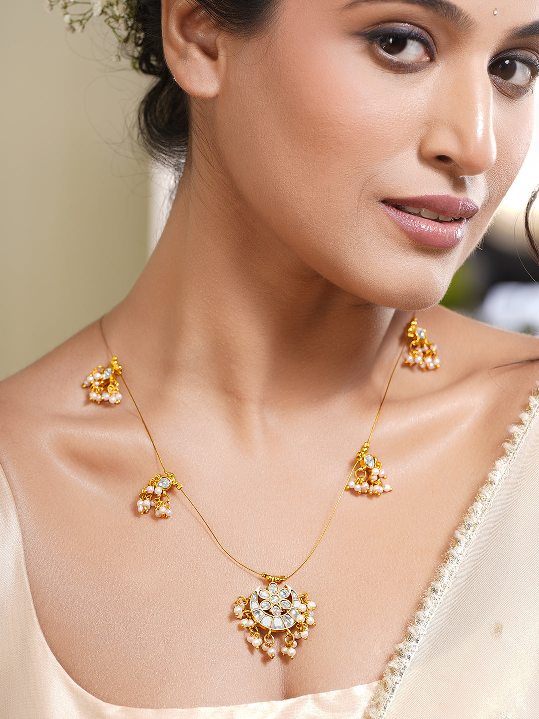 - White Kundan Centre Design Floral pendant accented with luminous kundan detailing