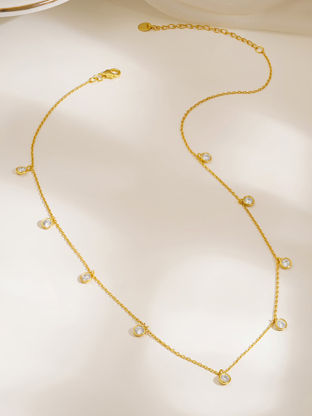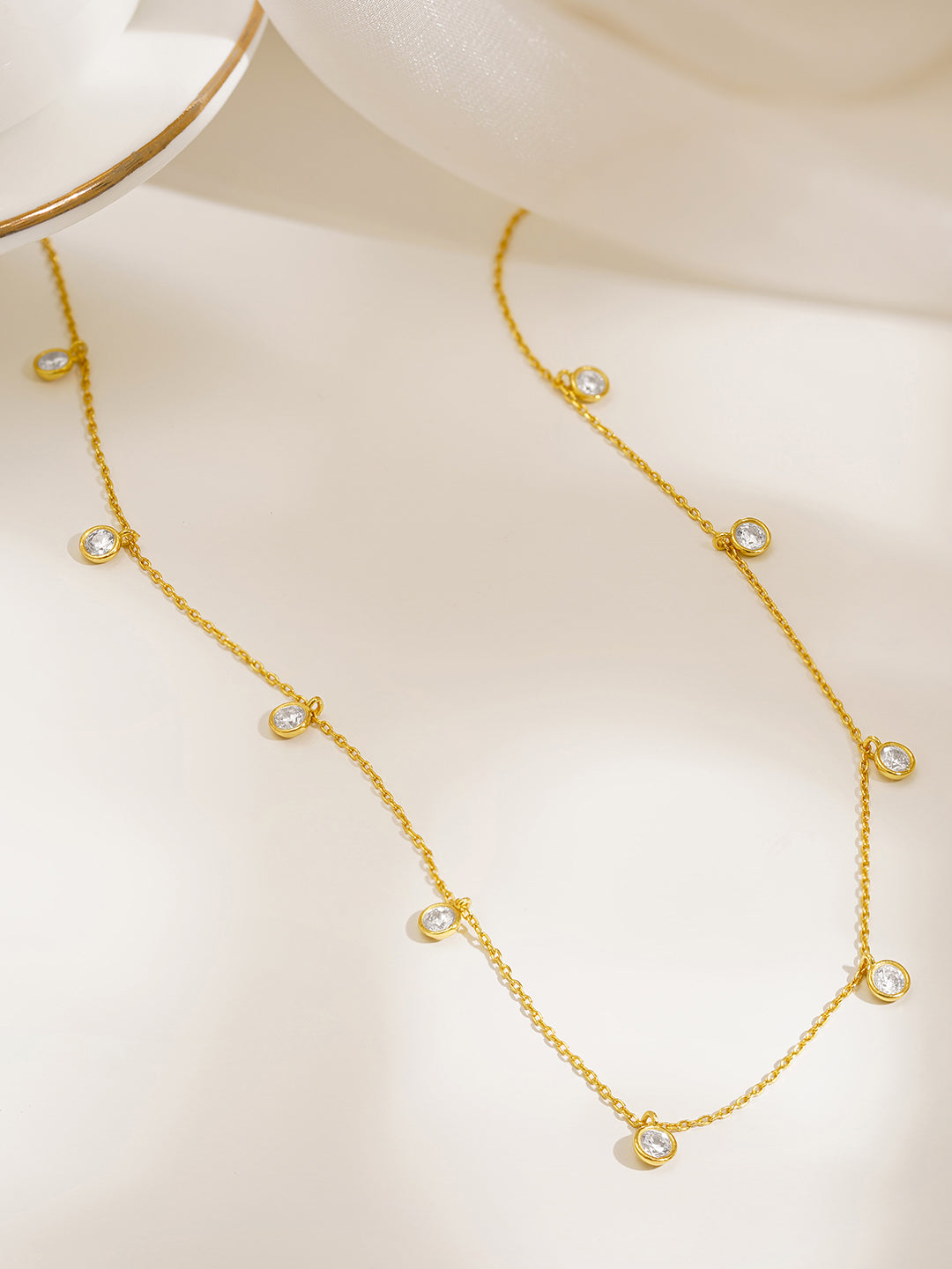 • Sparkling Charm Necklace Design : Crystal drops arranged along the chain create a bright statement necklace look