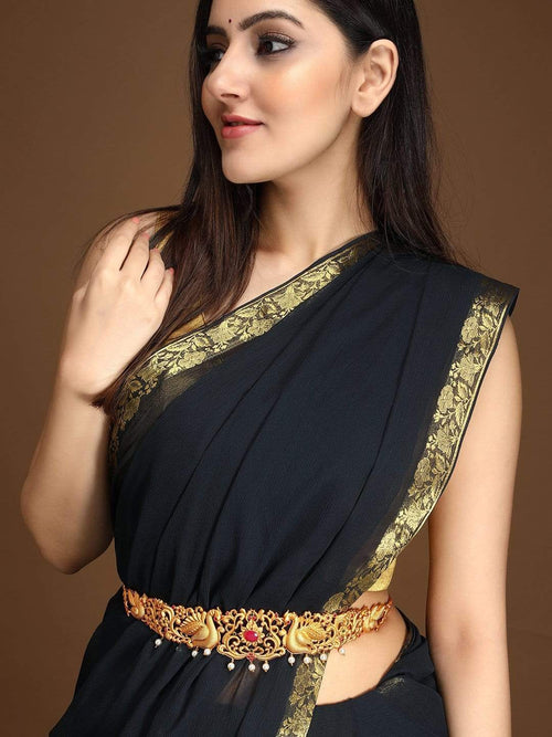 Rubans 24K Gold Plated Handcrafted Ruby with Peacock Tradional Kamarbandh
