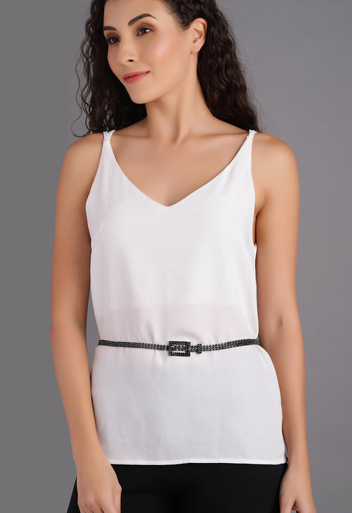 Rubans Women Black Metal Handcrafted Zircon Stone Belt