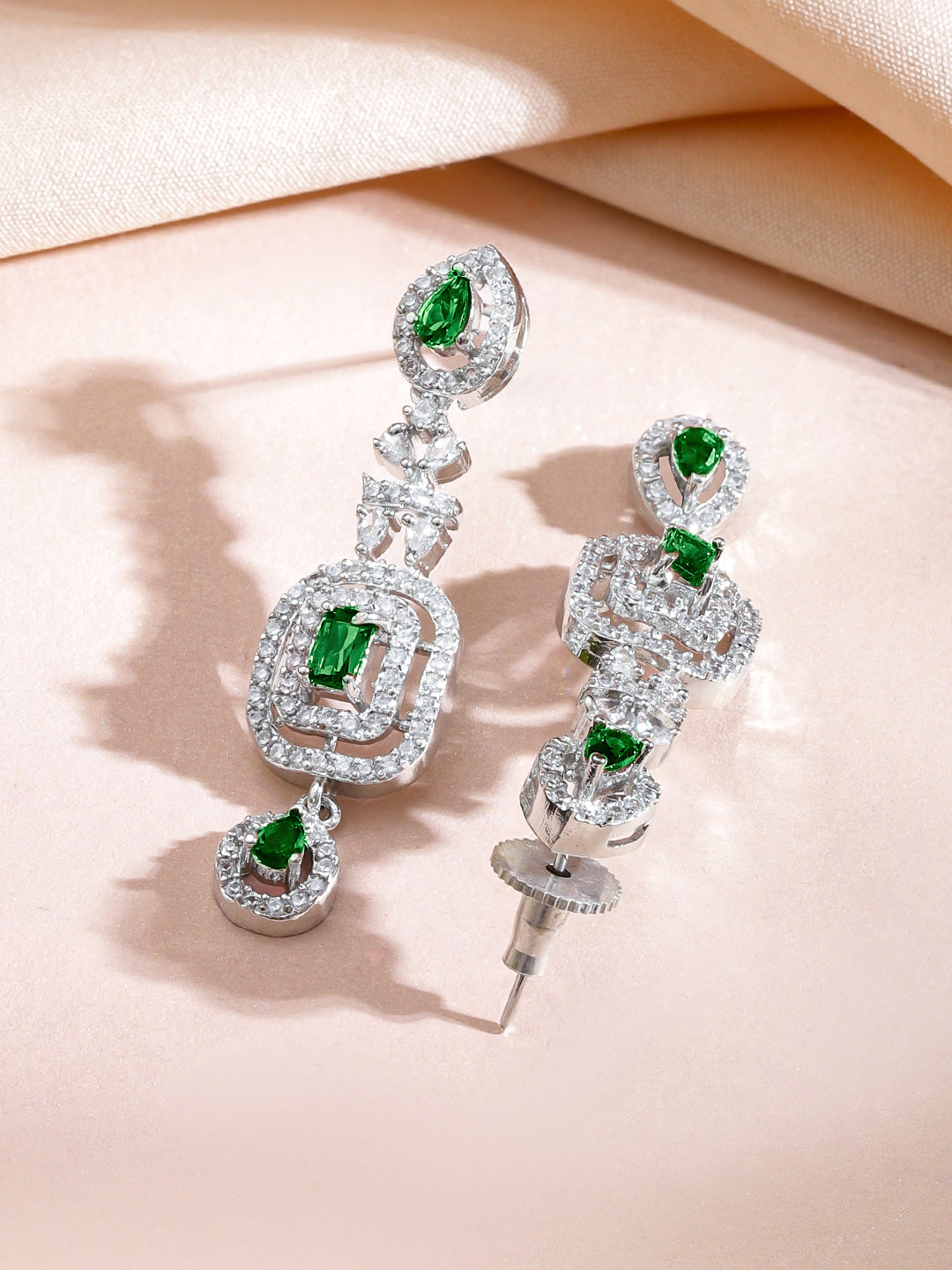 Necklace Set : Rubans rhodium-plated necklace set with dazzling emerald green Cubic Zirconia stones and matching earrings, crafted for wedding, festive and party looks with timeless luxury and sparkle.