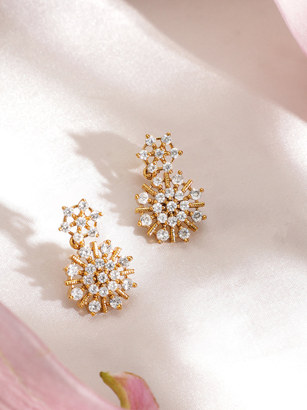 Stud earrings – These range from a single American diamond or a single stud of Zirconia to an ornate floral motif or Polki studs. You can also find Kundan studs in the mix, along with innovative designs.