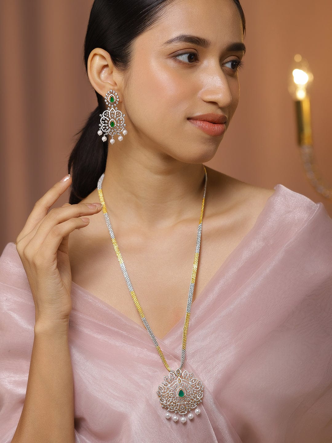 Dual-Toned American Diamond Zirconia Pearl Necklace Set