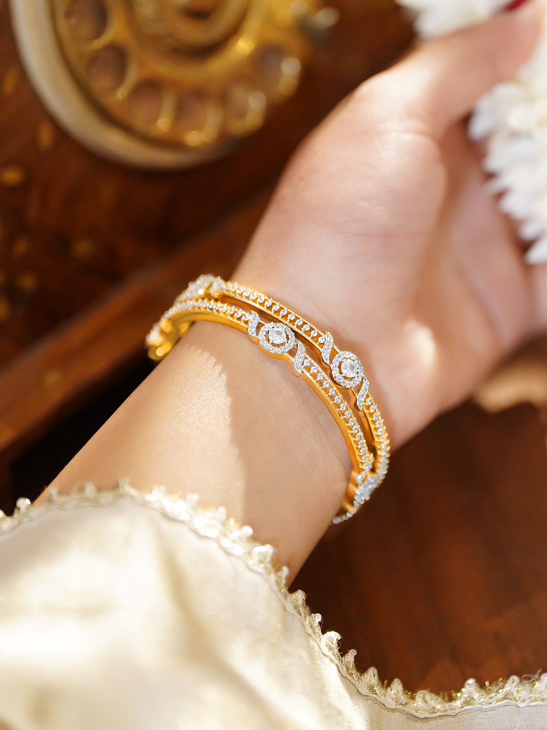 Stud earrings – These range from a single American diamond or a single stud of Zirconia to an ornate floral motif or Polki studs. You can also find Kundan studs in the mix, along with innovative designs.