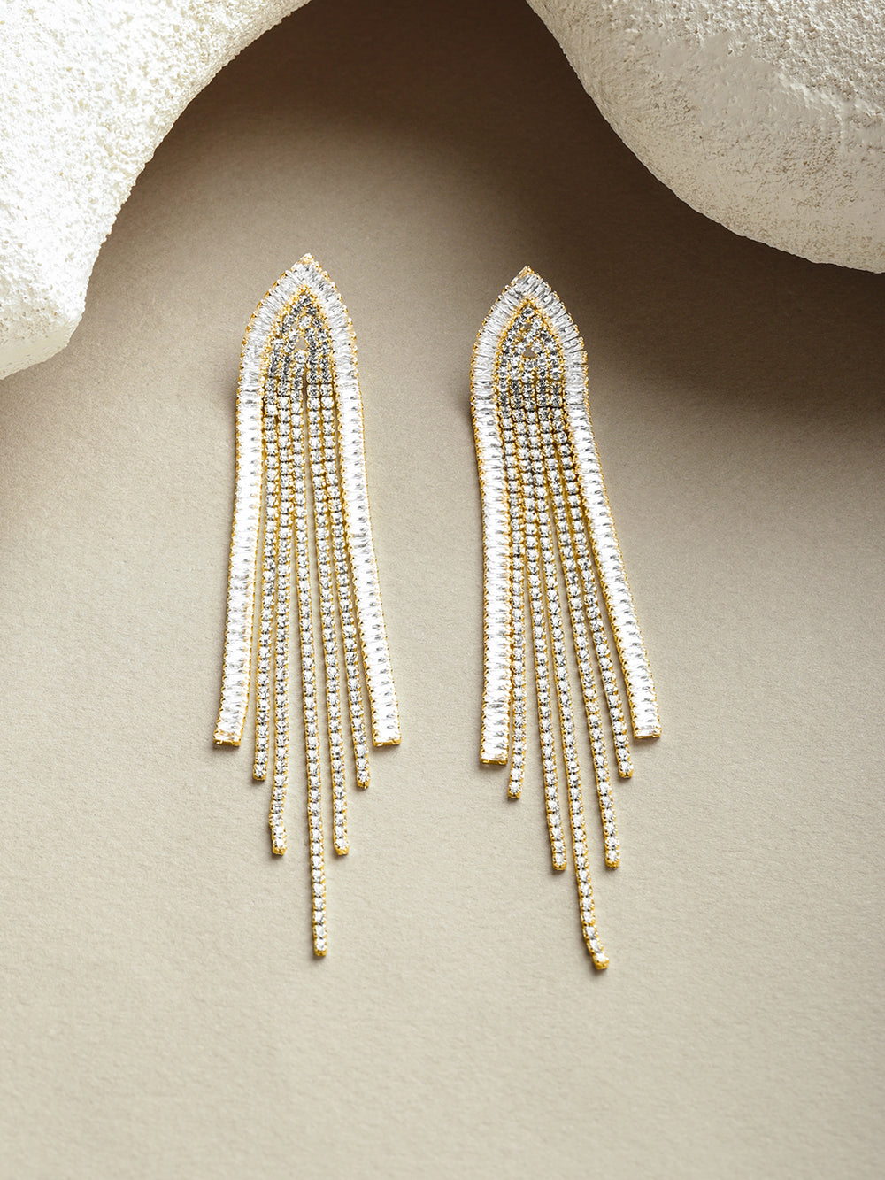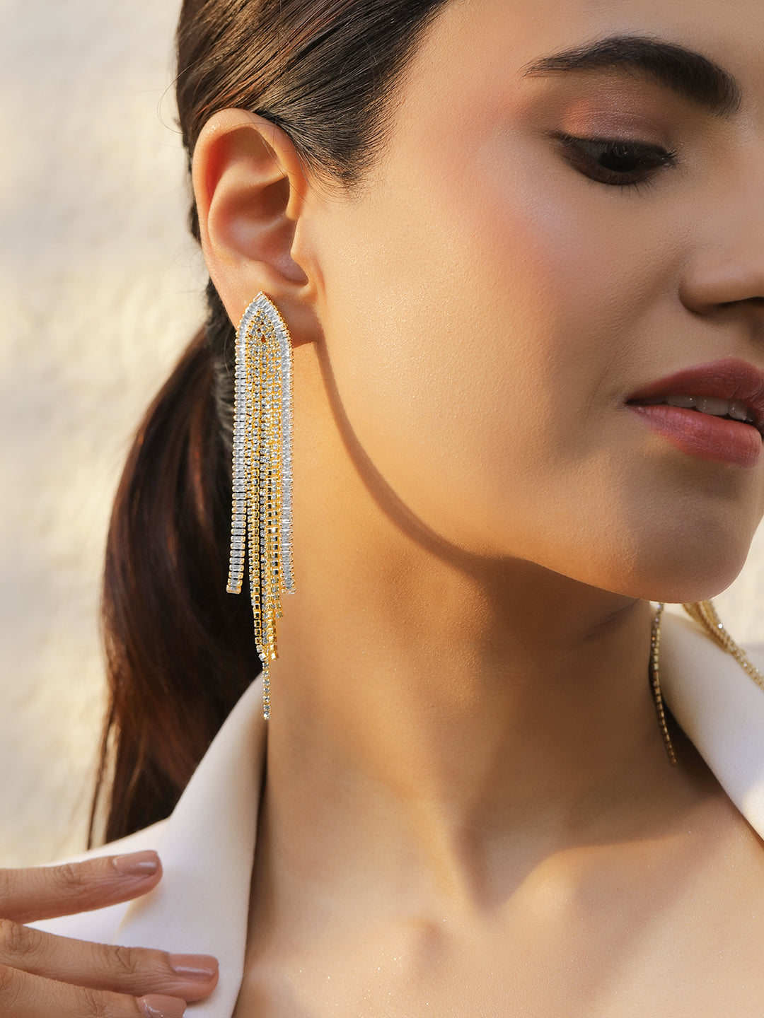 You can get chandelier earrings, shoulder dusters, fringe earrings, beaded earrings, stone studded earrings, voguish earrings, multi-coloured earrings, and many more.