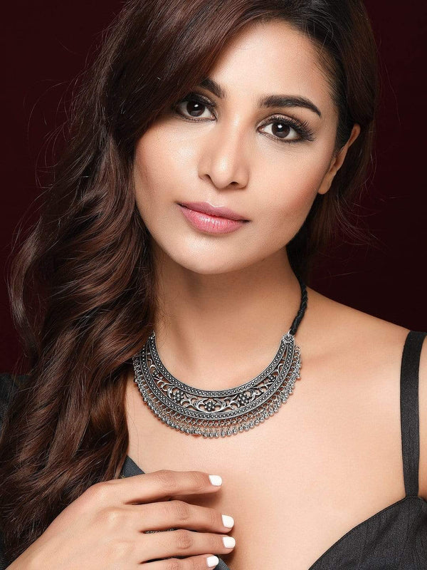 Rubans Oxidised Silver Plated Handcrafted Filligree Necklace