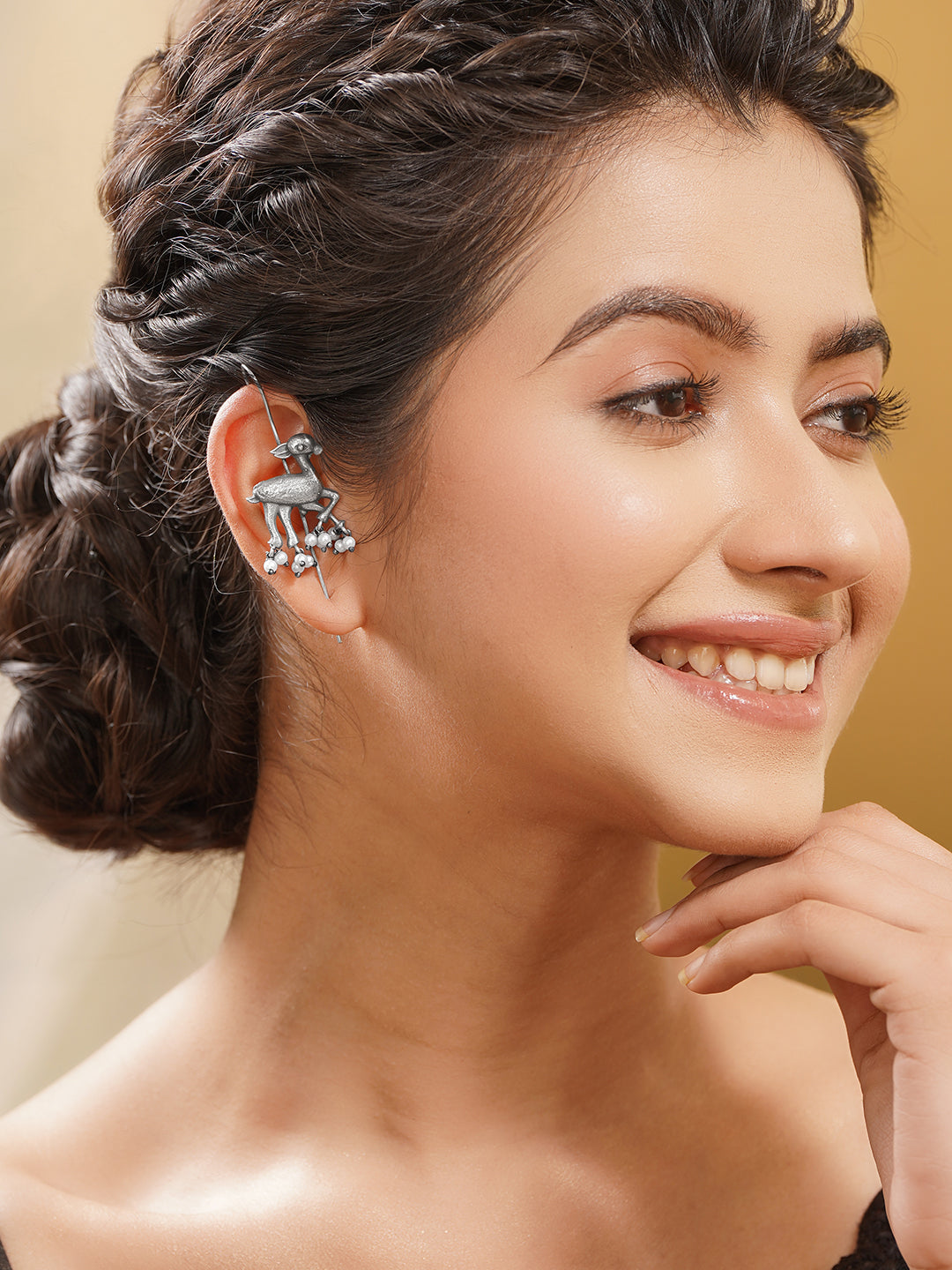 Share on WhatsappOxidised Silver Tone Brass Deer Pearl Statement Ear Cuff Earrings