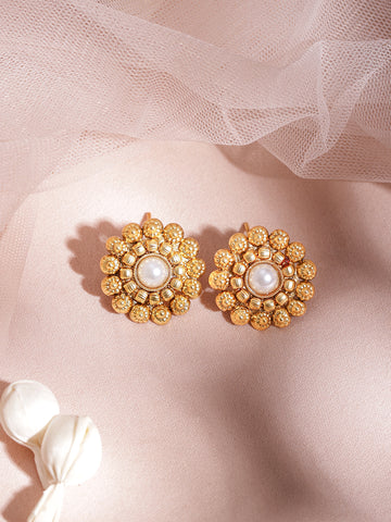 Stud earrings – These range from a single American diamond or a single stud of Zirconia to an ornate floral motif or Polki studs. You can also find Kundan studs in the mix, along with innovative designs.