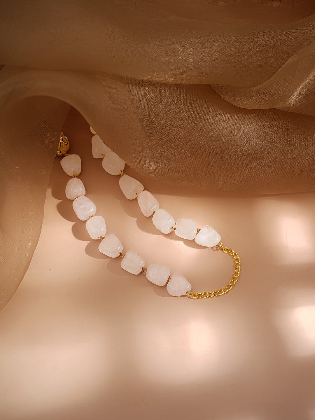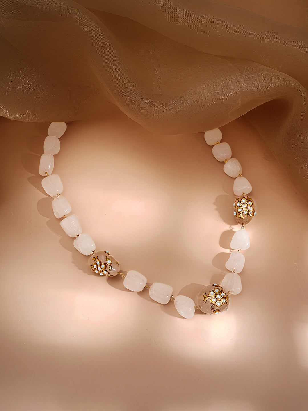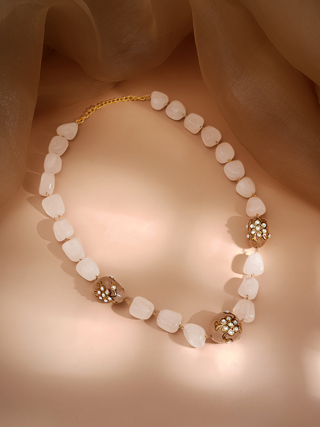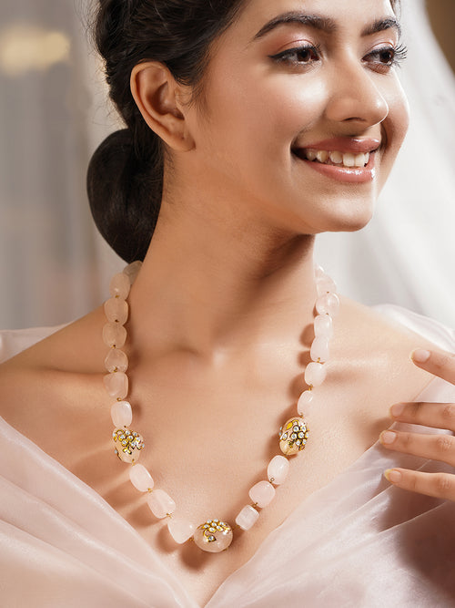 Designed with pastel pink and green semi precious beads this choker brings effortless elegance and calm confidence blending delicate colour with gold plated detailing for statement fashion jewellery lovers