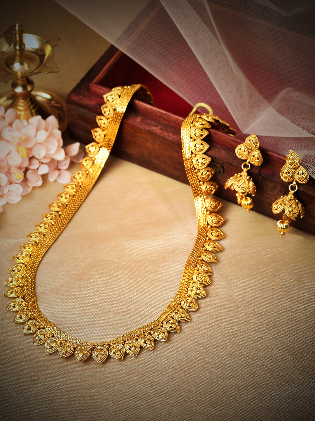 Temple jewellery earrings – While you may get the best of traditional earrings at Rubans, here is the traditional trove of gold-plated temple earrings.