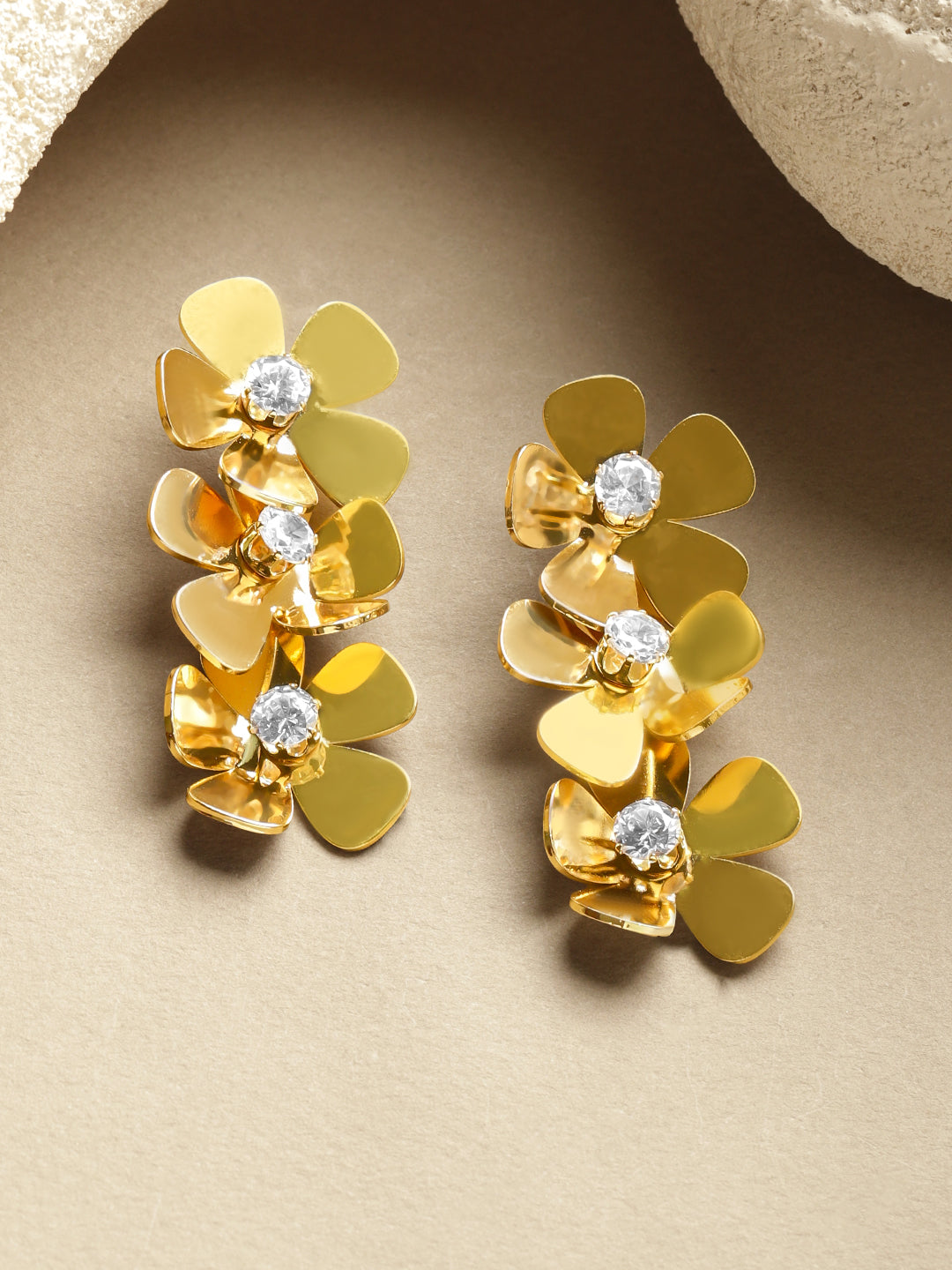 • Floral Glam Design: Features cascading 3D petal motifs with Cubic Zirconia centers for a bold yet feminine aesthetic.