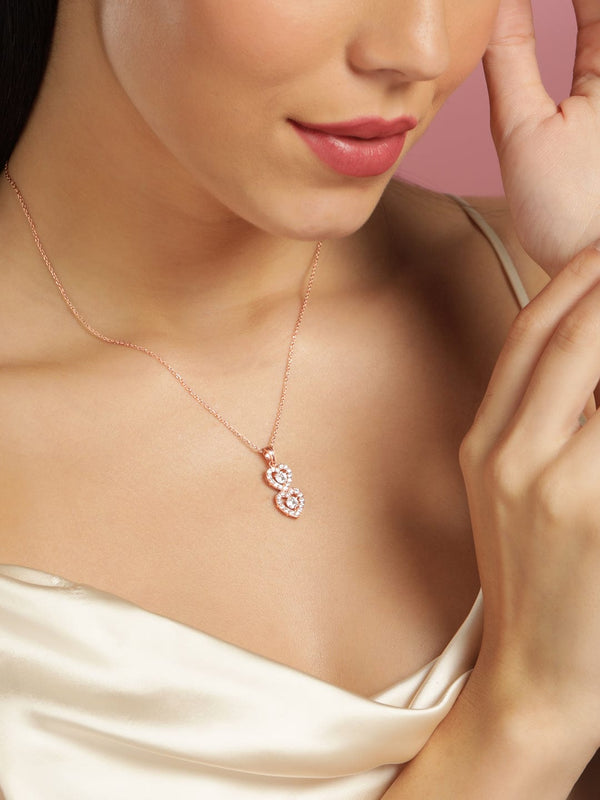Rubans 25 Silver 18K Rose Gold Plated Double Layer Heart Pendant Necklace Necklaces, Necklace Sets, Chains & Mangalsutra