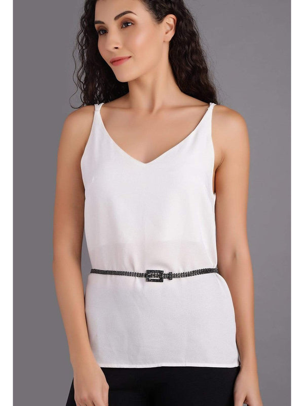 Rubans Women Black Metal Handcrafted Zircon Stone Belt