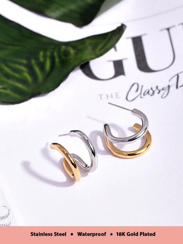 Rubans Voguish 18K Gold And Rhodium Plated Stainless Steel Waterproof Stud Earrings. Earrings