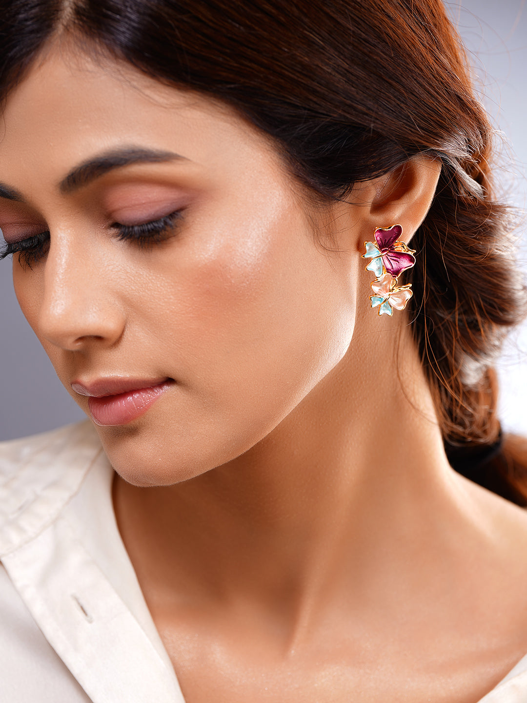 Multicolor Enamel Butterfly Stud Earrings
