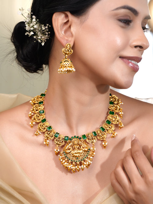 Divine Temple Emerald Necklace Set